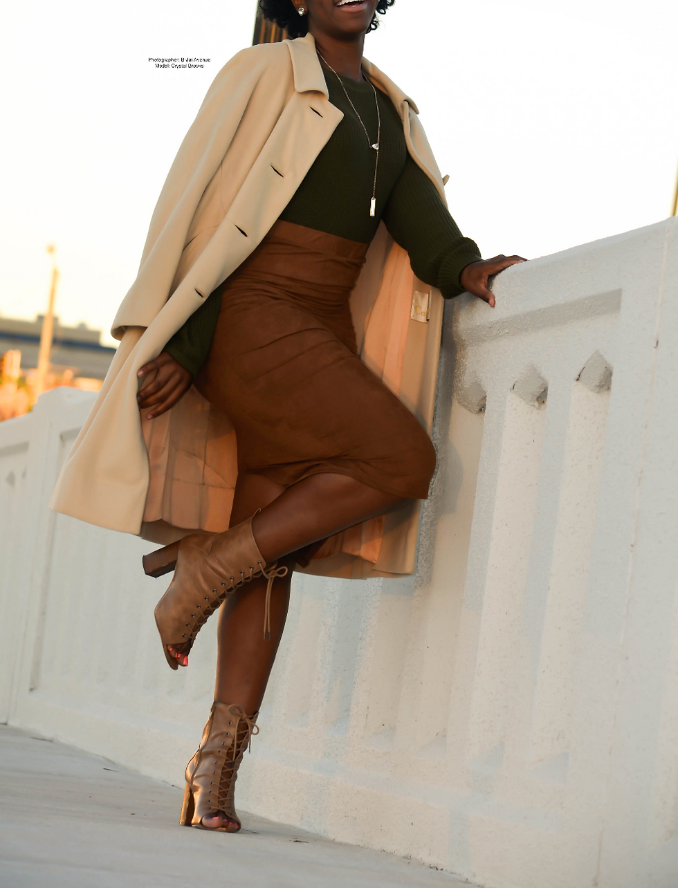 I scrolled across a boutique searching for new models on Instagram for their clothing. I decided that I wanted to brand myself and get more involved. The rules of the contest was to order something from the website and post a picture. I ordered this beautiful camel pencil skirt from City Republik and the material is everything I wanted it to be! I paired this skirt with the different shades of khaki to enhance the color. This skirt hugs my hips so I went for a chunky sweater to balance my figure. My all time favorite look are lace up heels or booties with a midi skirt. The look is so chic and classic, you can never go wrong this combo!